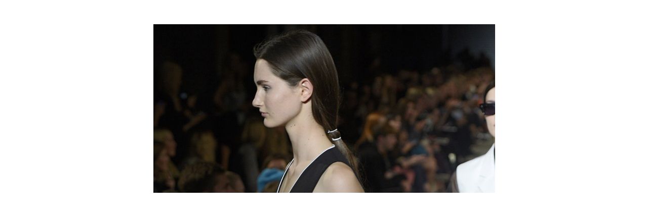 Широкая кожаная повязка. На дефиле от Helmut Lang сезона Весна-Лето 2014 волосы моделей были зафиксированы с помощью широкой кожаной повязки. Модельер выбрал яркий аксессуар, отлично вписывающийся в стиль его новой коллекции. Все модели с длинными волосами использовали широкую повязку, чтобы зафиксировать волосы по центру длины прядей. Такой аксессуар больше похож на украшение, нежели на резинку.
