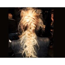 Для эстетичного результата выбирайте пряди одинаковой толщины. Если же вы хотите поэкспериментировать, то можете вынуть несколько прядей из косы по примеру косы, увиденной во время показа от Byblos (на фото ниже).