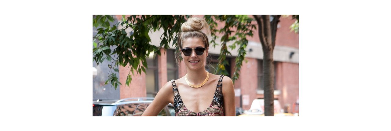 Ее стиль? Сочетание богемности, женственности и стиля рок. Наша модель решила выбрать свой гардероб в соответствии с модными тенденциями сезона: на ней очень женственное платье со стразами, которое создает интересный контраст с ботинками из черной кожи в бунтарском стиле. Образ девушки дополнен аксессуарами – колье и солнцезащитными очками. Остается только дождаться по-настоящему летних деньков, чтобы опробовать этот образ.