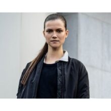 Ее образ? Шикарный casual. Девушка сочетает свои кожаные штаны с длинной рубашкой серого цвета и черным пуловером. Сверху девушка надела черный бомбер в свободном стиле. На ноги она выбрала черные ботинки, в которые заправила штаны. Модница носит коричневую кожаную сумку, чтобы положить туда все необходимое. Такой образ подходит для любого времени дня и позволяет выгодно подчеркнуть ее прическу.